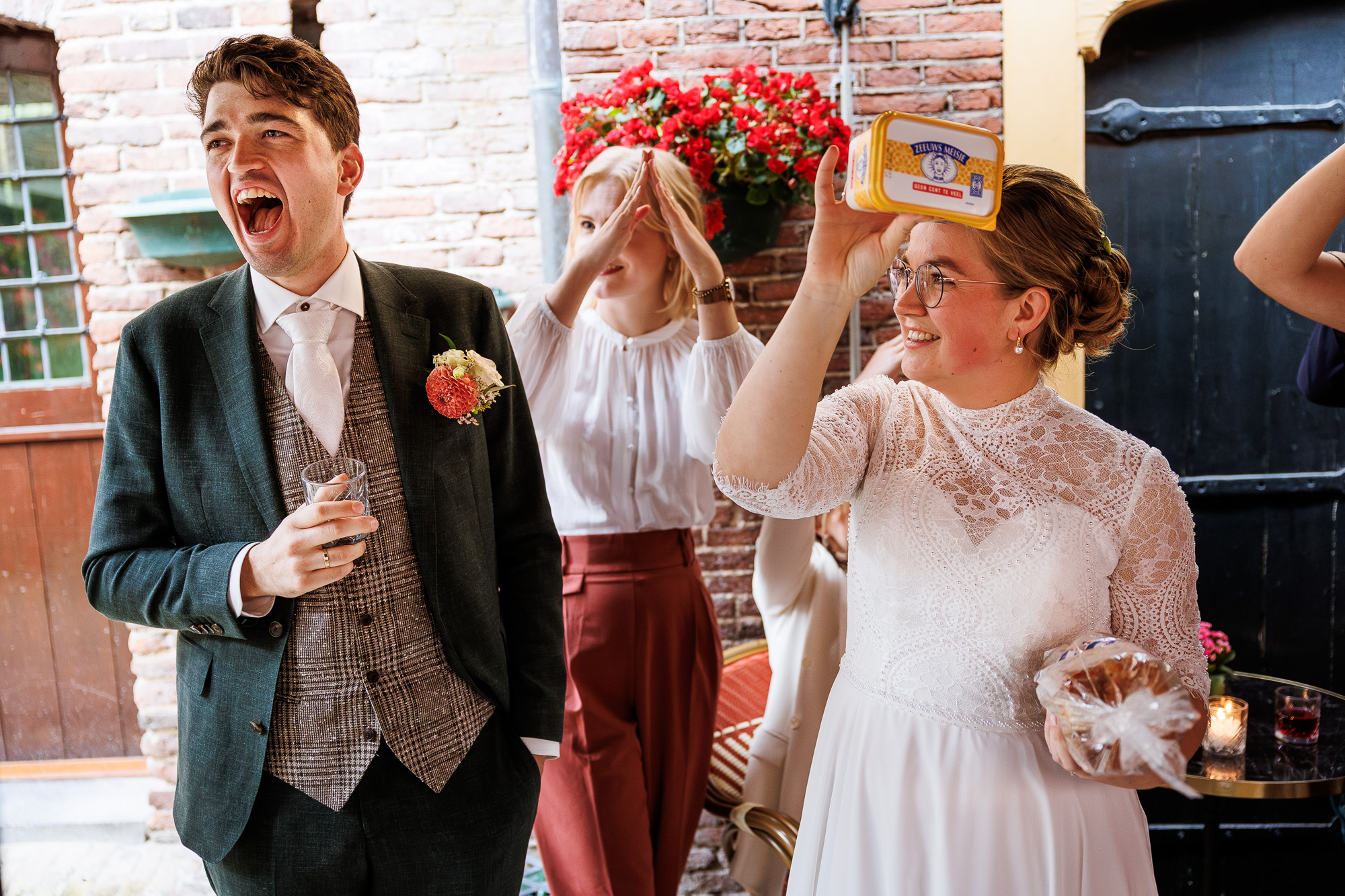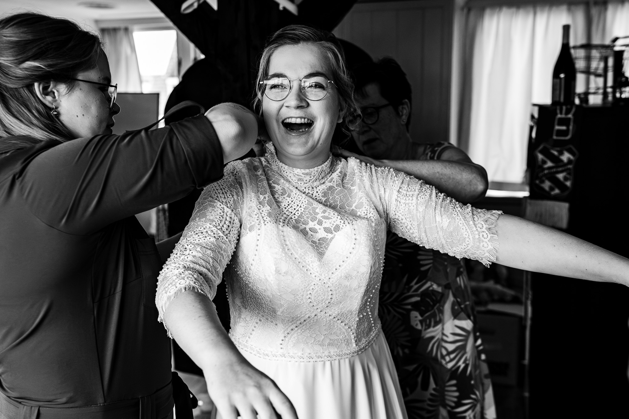 Er zat een heerlijke, vrolijke energie in deze dag, en het is zo fijn om dat te kunnen vangen in ongedwongen beelden. Dat is echt waar mijn fotografie hart ligt. Geen eindeloos geposeer, maar documentaire trouwfotografie die een verhaal vertelt. Zodat als je over 5, 10 of 25 jaar de foto’s er bij pakt, je weer even terug kunt gaan in de tijd. Naar hoe het voelde, de speech van je beste vrienden, waarom je zo moest lachen en wat je ontroerde.